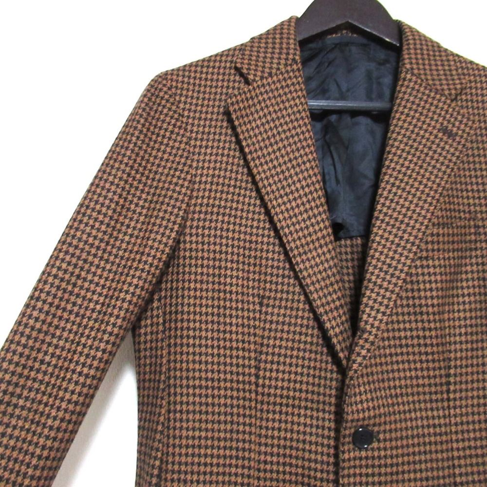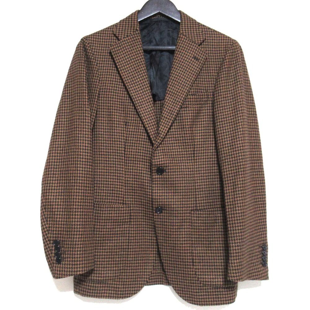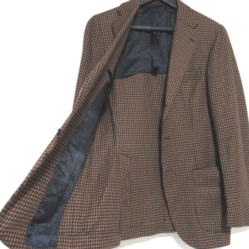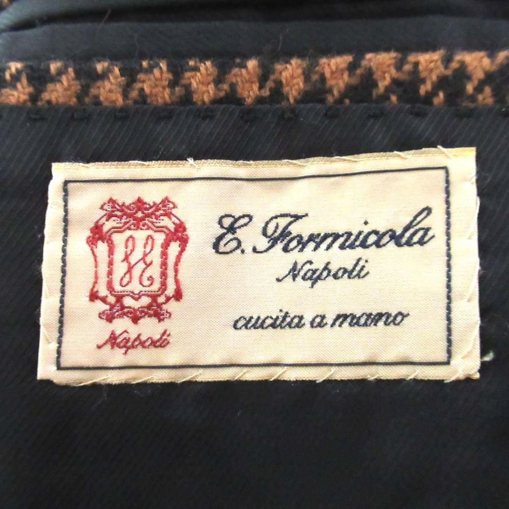 美品 ERRICO FORMICOLA エリコフォルミコラ 千鳥格子柄 ウール シングル テーラードジャケット ブラウン×ブラック メンズ 古着 中古 USED