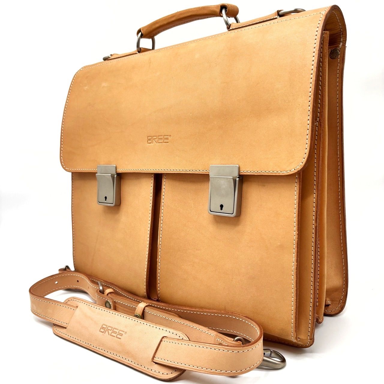 ✨美品✨ BREE ブリー ビジネスバッグ ブリーフケース ハンドバッグ ショルダーバッグ トートバッグ ワンショルダーバッグ 2way レザー 革 ヌメ革 マルチポケット フラップ ベージュ 肌色 ユニセックス 男女兼用 メンズ レディース