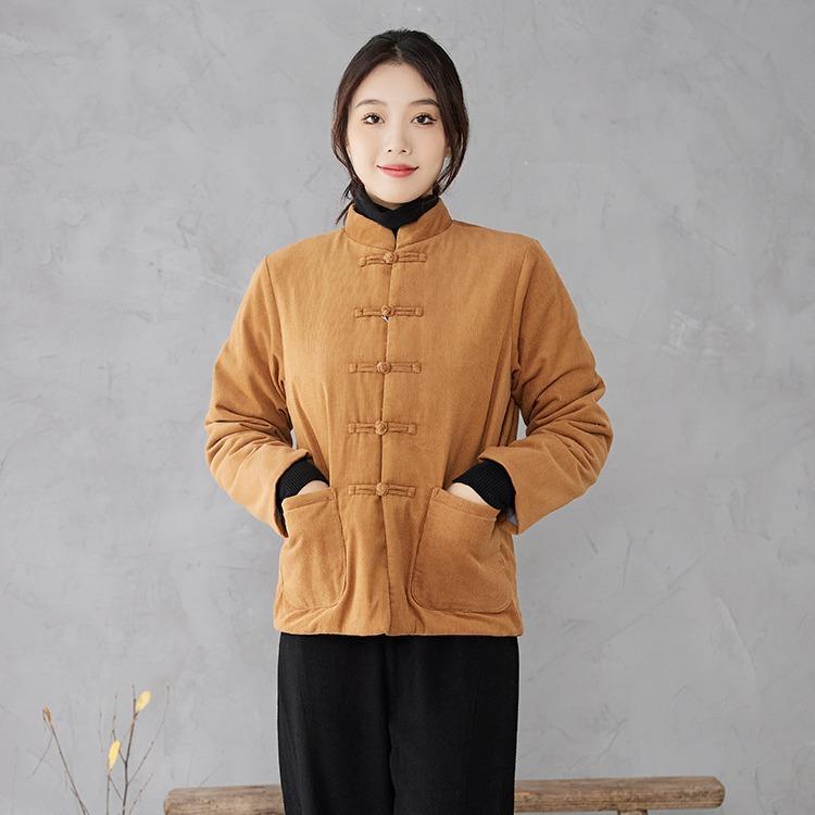 綿ジャケット レディース コーデュロイ チャイナ風 立襟 ショート丈 トップス 秋冬 ゆったり 楓葉レッド ピンク系