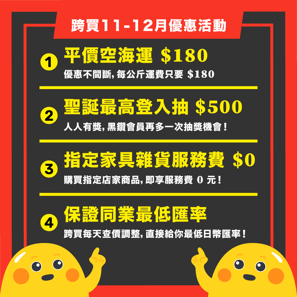 7/1~7/31 於跨買購物時選擇平價空運寄送,運費為每公斤199元。